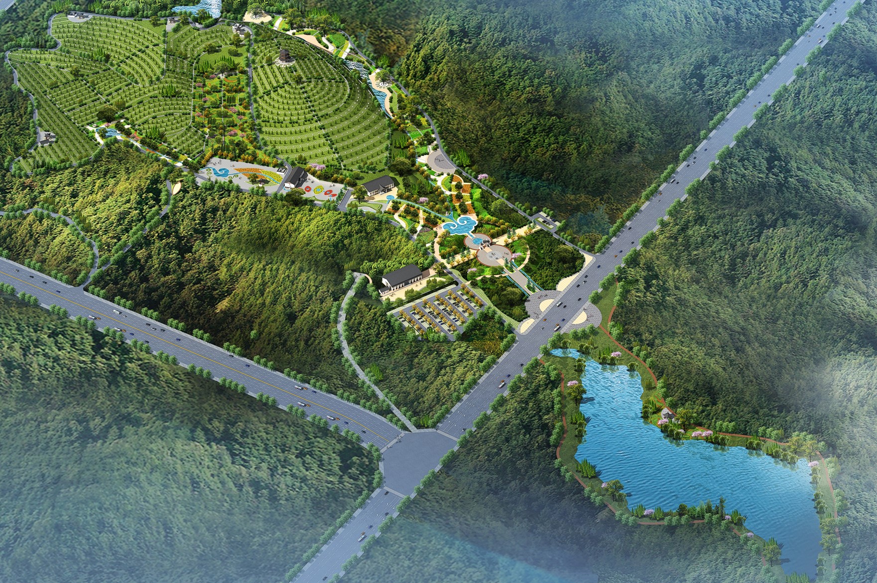 德龍陵園來龍于昆侖山系,屬翠峰山主脈延伸到石馬龍山的團(tuán)山結(jié)穴而建,面朝小閘水庫,太和山與寥廓山左右環(huán)抱,園區(qū)巒聳翠、水映霞輝、山環(huán)水繞、郁郁蔥蔥,有五龍捧圣之勢(shì),冠以五福臨門之愿,五德傳承之感,使山水人文融為一體,是弘揚(yáng)中華文化的教研基地。